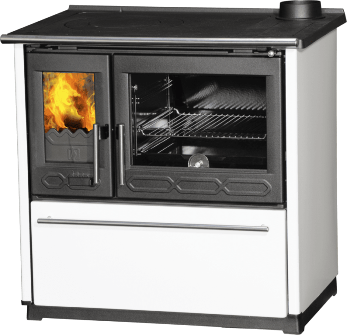 Cocina de leña 8 kW 850 cristal blanco izquierda – Plamen